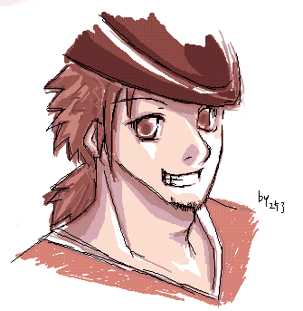 外見40代の男性 肩口までの紅い髪を後ろで縛り、グリーンのハンチングを被っている 筋肉質で、近距離パワー型 意外と手先は器用であり、料理が得意 プロレス技を好んで使い、戦いを楽しむタイプ マツリ(495)という嫁がいる